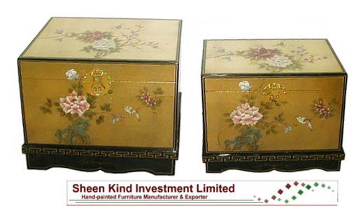 • Hand-painted scenes of flowers and birds atop an impressive layer of gold leaf.
