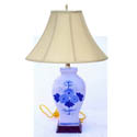 Item Number: L-10     Temple Jar Lamp with Hand-Painted Blue & White Design